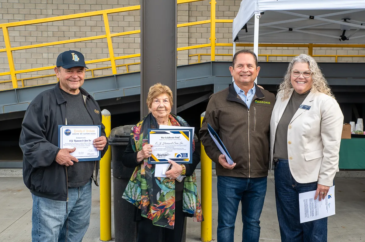 During the ceremony, proclamations were presented to Harrison President Jim Harrison, Nan Drake, and Agromin’s Bill Camarillo by the Ventura County Board of Supervisors and city officials from Ventura, Oxnard, Camarillo, and Fillmore.